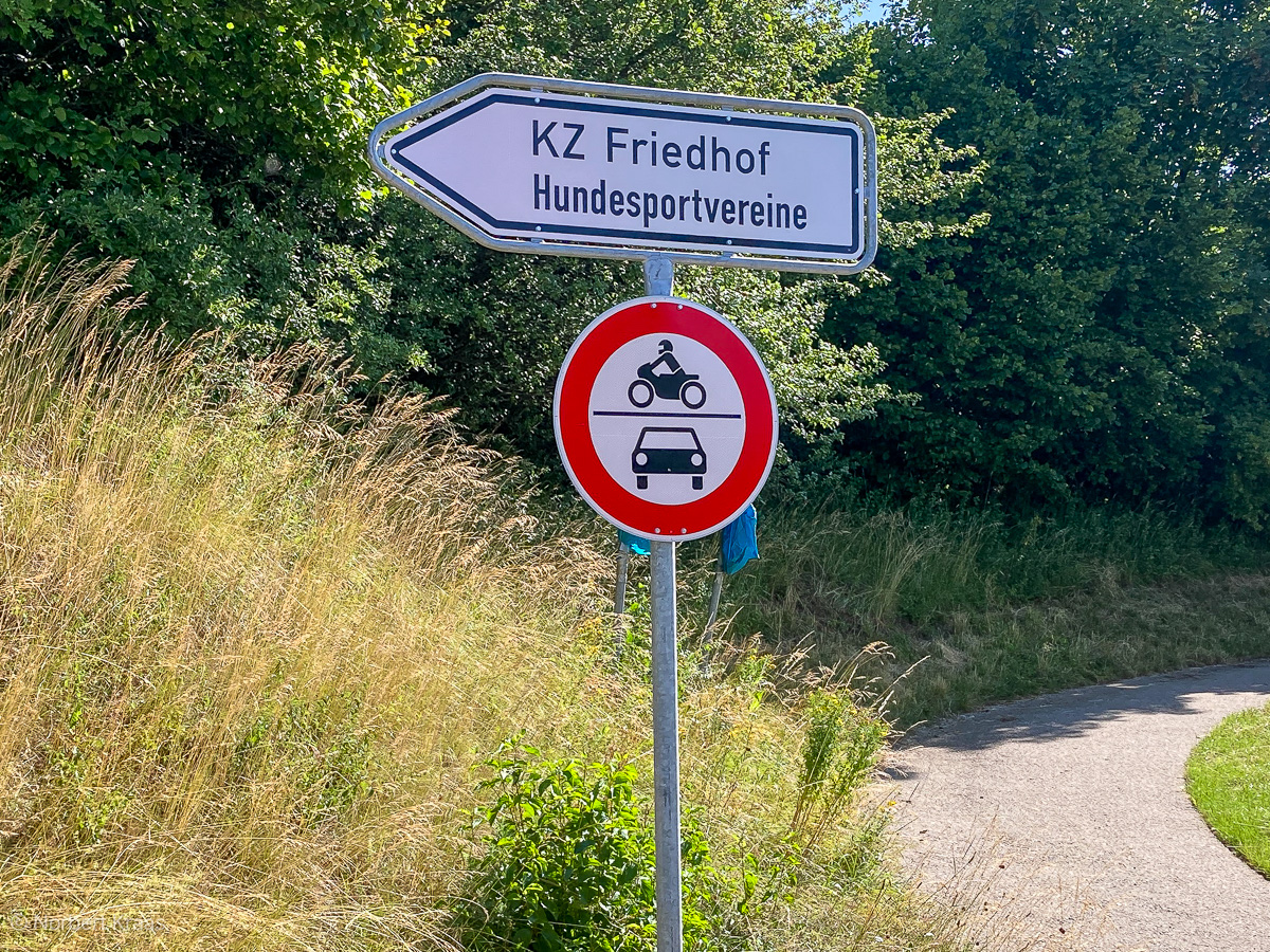 Mich persönlich hat vor einer Weile das Verkehrsschild da oben irritiert. Es steht in einer schwäbischen Kleinstadt am Fuße der Schwäbischen Alb und weckt bei jemandem, der etliche Bücher von Holocaust-Überlebenden gelesen hat, unangenehme Assoziationen. Ich sehe da zum Beispiel sofort Szenen mit KZ-Wachpersonal vor mir, mit zähnefletschenden deutschen Schäferhunden an der Leine.
