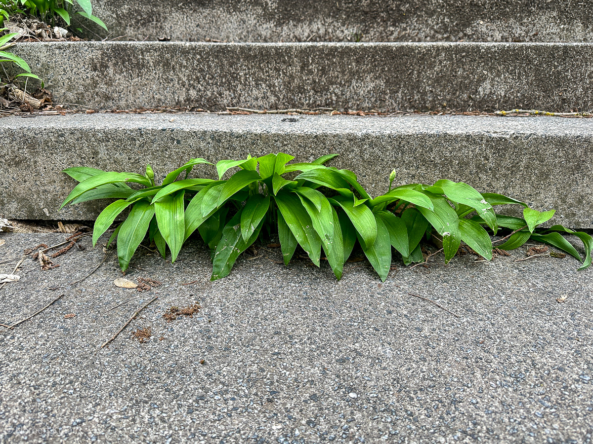 Between concrete steps,